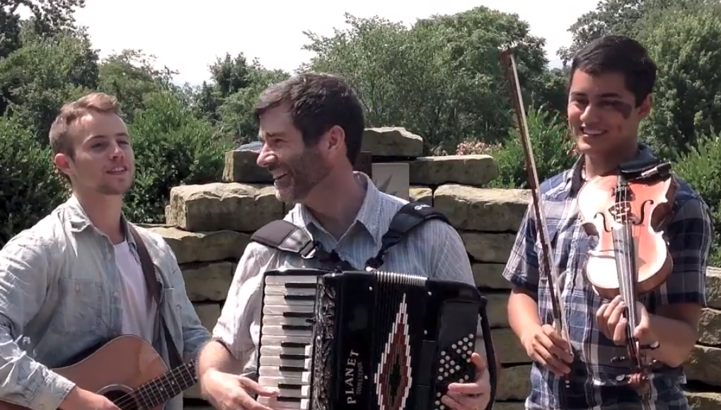 I tried to record it in my backyard but it was too windy that day. So right after doing a Saturday AM set with a youth conference, Matt, Andrew and I went to “Kelly’s Garden,” which is just outside the student center at Franciscan. Kelly Roggensack was a sophomore who died in a car accident on the way back from a cross-country track meet. I thought it was a fitting place for this song.